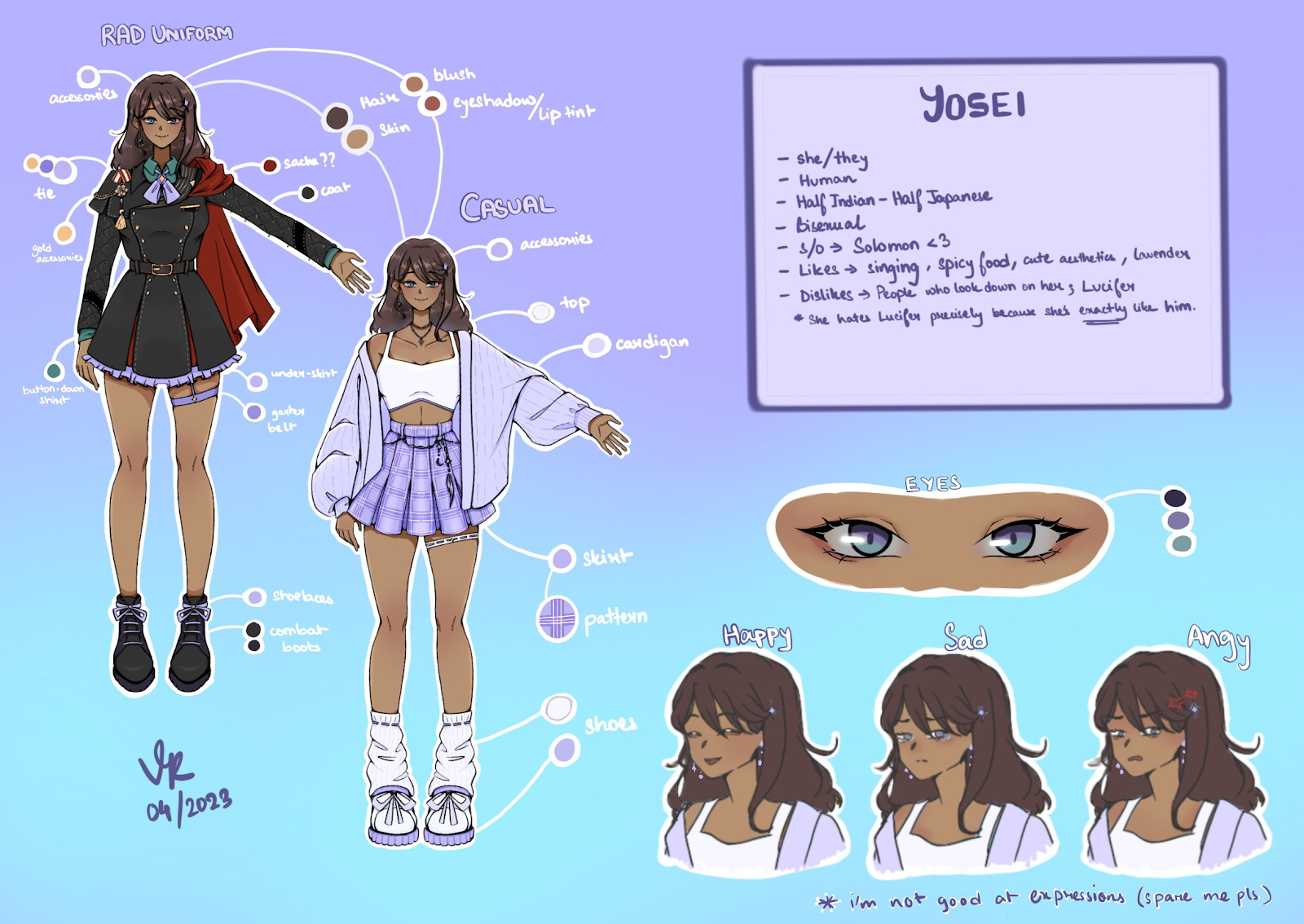 Quite a while before the script was finalized, I asked my friends if they wanted their characters as cameos for me to try out the "flags" in Ren'Py. Three of them were enthusiastic and sent me reference images immediately. I think this part was pretty important to me because it kickstarted my motivation to draw again. I received their consent to alter the design to fit within the story.